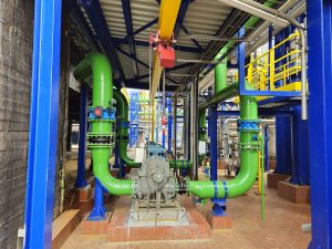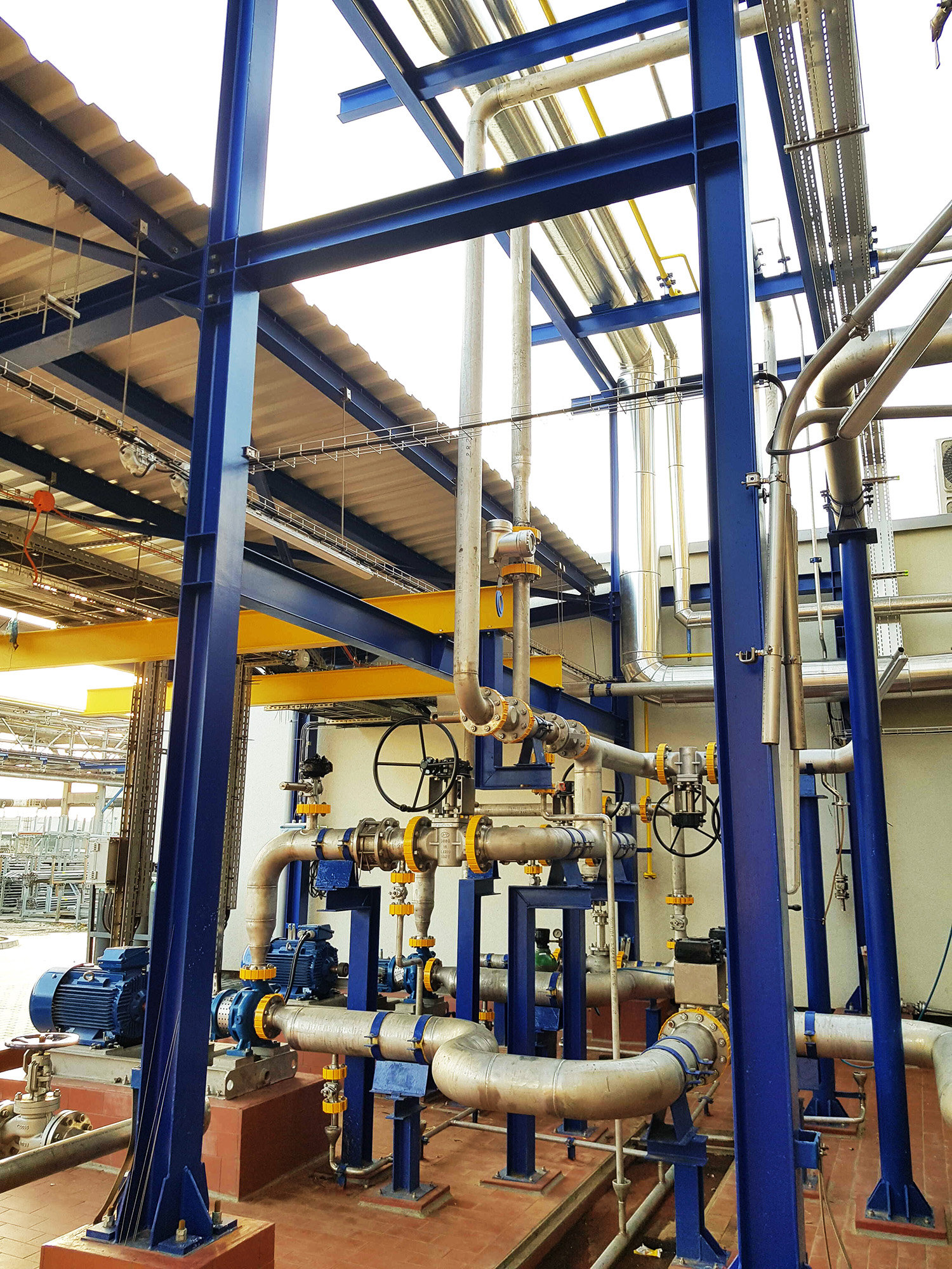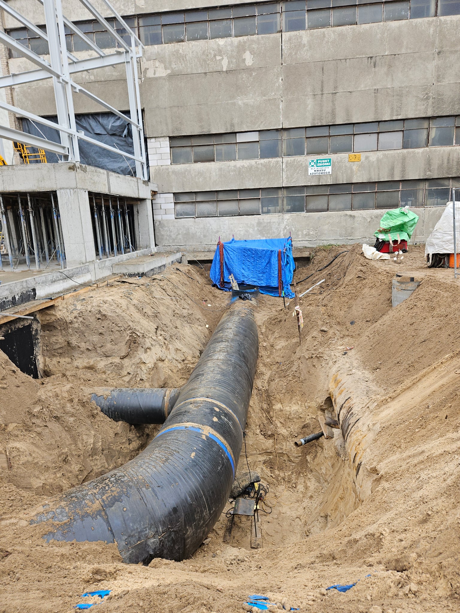 – Wykonanie i montaż nowych rurociągów DN200 wewnątrz hali zakładu;