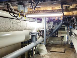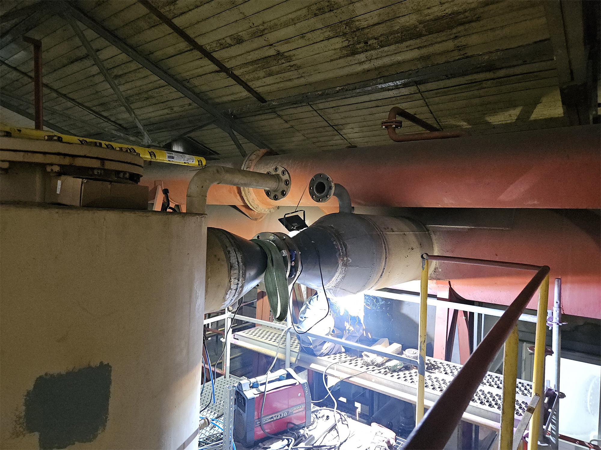 • Wykonanie i montaż nowych rurociągów ze stali węglowej i nierdzewnej o średnicach DN50÷DN600. Łączna waga wbudowanych rurociągów to ok 32 tony;